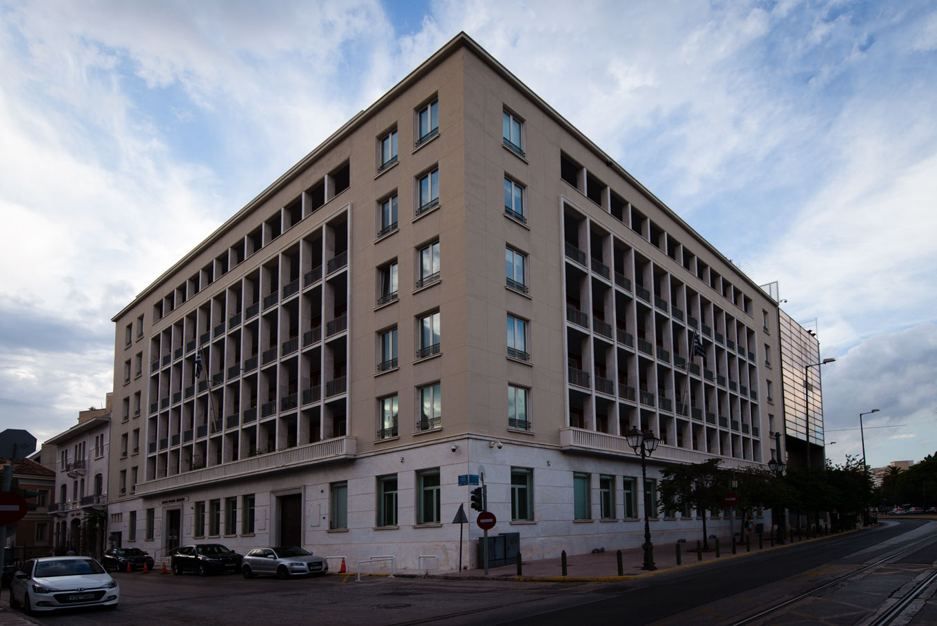 The exemplary symmetrical corner Bodossaki Mansion at 20 Amalia Avenue and 5 Souri Avenue is a historic building in Athens. Its construction began in 1949 and was completed in 1958 and bears the signature of Andreas Ploumistos, a founding member of the Hellenic Architectural Society. For many decades it was the headquarters of the powerful businessman Prodromos Athanasiadis, who went down in modern history as Bodosakis. The six-story Bodosaki Mansion is considered the best work of Andreas Ploumistos and his architectural designs bear his signature. It consists of a ground floor, 6 floors and 2 basements, having a total area of ​​13,460 sq.m. In the period 2005-2006 it was radically renovated. The building has an unobstructed view of the National Garden and also of the important landmarks of the city center including Lycabettus, the Parliament, Kallimarmaro, the Pillars of Olympian Zeus, and the Acropolis.