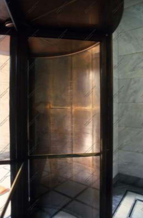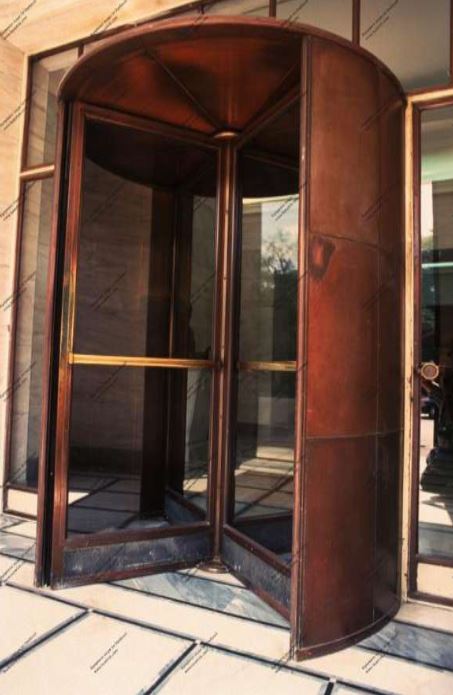 The innovative revolving door of the central entrance which has now been replaced by other doors.