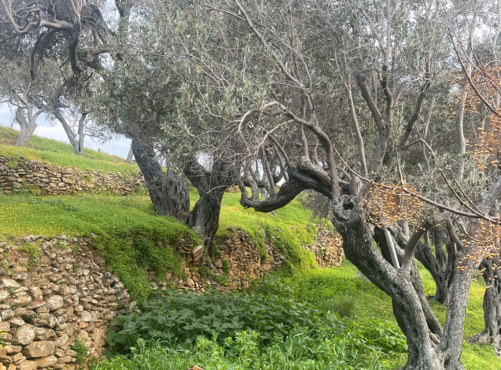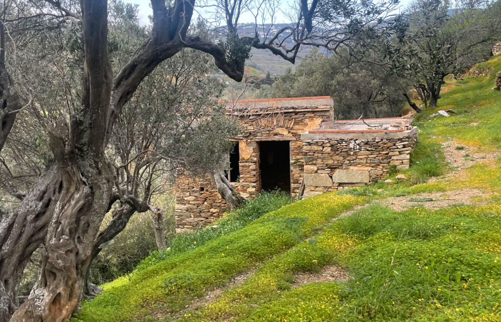 It is accessible from all sides as it is surrounded by paths and a road has come on one side. This helps a lot in sowing because it can be done with a tractor and not with animals. It contains two wells and a cistern for storing water. One of its auxiliary spaces is a building, the size of large animals with a manger for straw and a trough for food. Threshing and seed cleaning and storage area. The owner of D. Gryparis calls it “the field of Krikelis”, after its previous owner. When Dimitris took the decision to become a farmer in addition to the rest of the fields that belonged to the family, he worked for many years on the ships in order to be able to buy a field of such size and wealth that he had as his daughter Alexandra tells us
