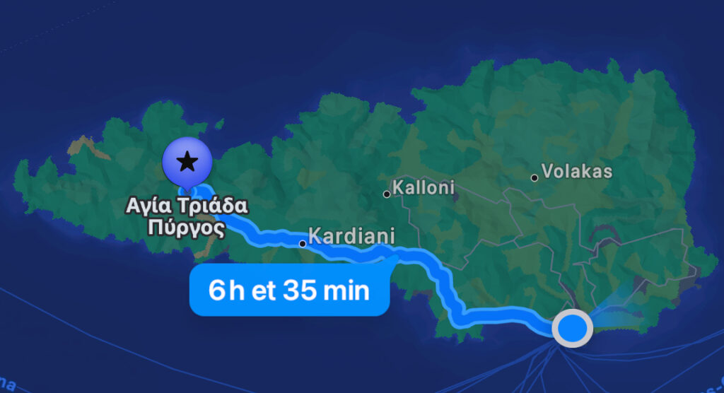 Chora – Pyrgos proposed duration of journey in contemporary times