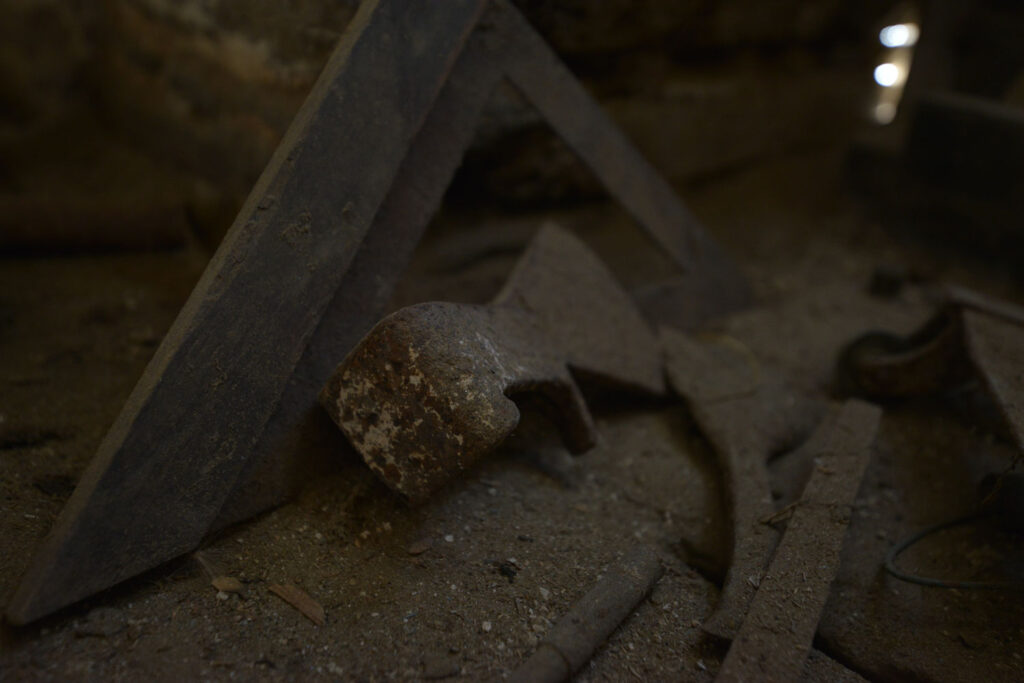 We see tools left in the Ysternia Rigos family smithy. © Alexandra Gryparis